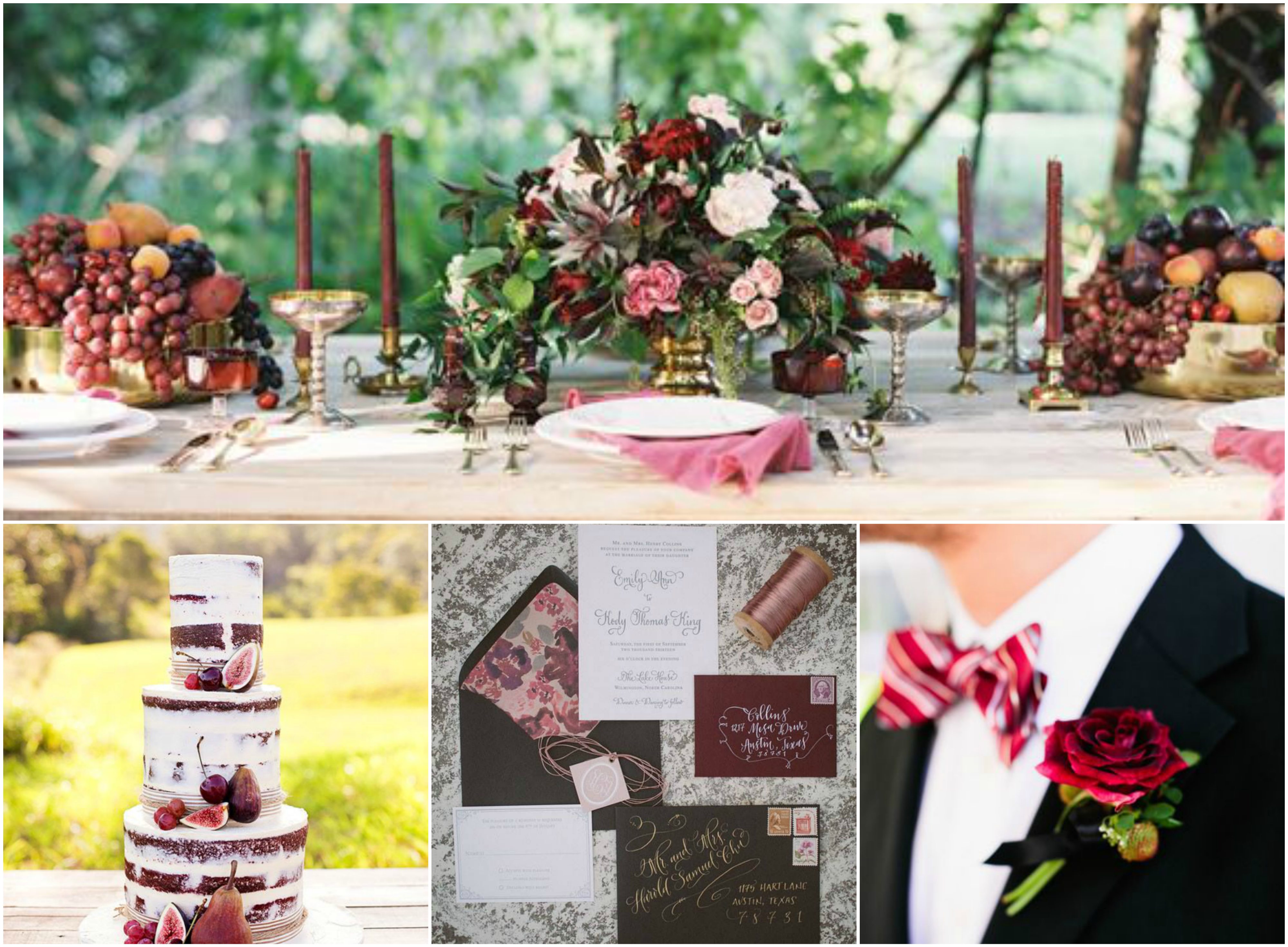 Photo credits: 1. mise en place: Lani Elias Fine Art Photography via magnoliarouge.com – 2.torta: Jennifer Oliphant Photographer via polkadotbride.com – 3. stationery: Kat Bevel Photography via greenweddingshoes.com – 4. boutonniere: Lindsey Shea Photography via stylemepretty.com
